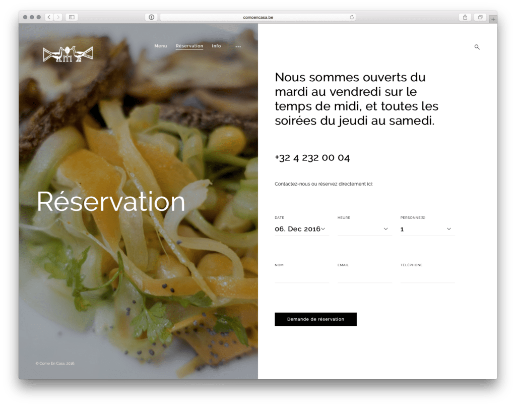 A vegetarian and vegan restaurant in the heart of Liège. I designed the visual identity around the Perron de Liège (a local landmark steps from the restaurant) creating a warm, sympathetic graphic language with precise typography that reflects the care and authenticity of the cuisine. I built a streamlined website focused on a single function (online booking) and configured social media platforms and search engine optimisation.