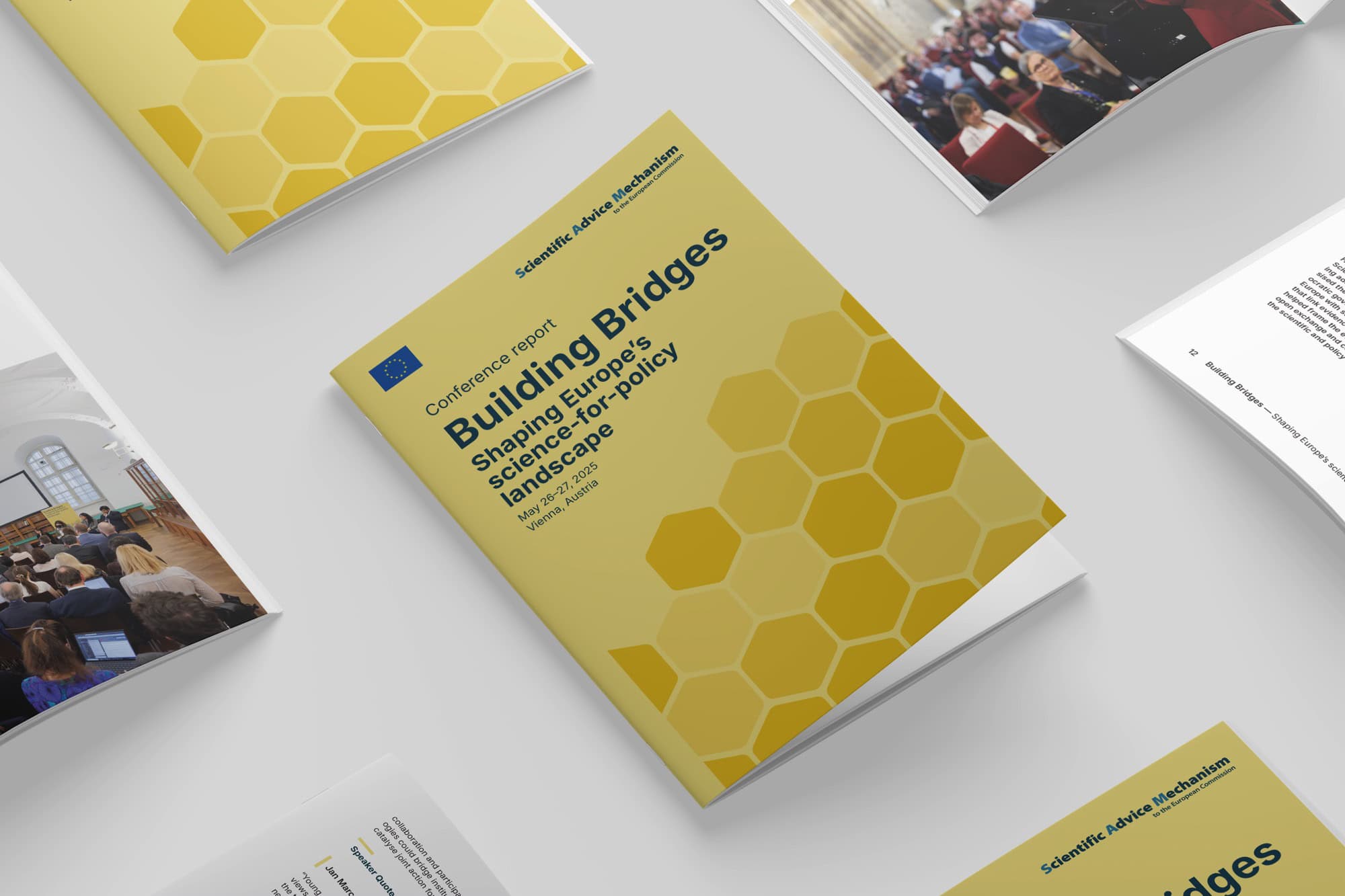 The Building Bridges conference report was conceived as more than a record of proceedings, aiming instead to convey the atmosphere, relevance, and significance of the event within Europe’s science-for-policy ecosystem. I designed the full layout of the publication with a strong emphasis on photography-led storytelling, using imagery to communicate the mood and importance of the discussions. In parallel, I produced a behind-the-scenes event video aligned with the same visual and narrative identity, ensuring coherence across print, digital, and audiovisual formats. The result supports both institutional reporting and broader communication objectives.